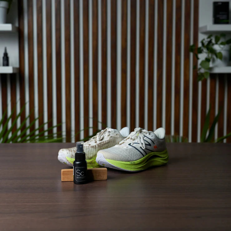 Step 6: Apply our Odor Protector within the soles of your FuelCells to effectively eliminate unpleasant odors and hinder the growth of bacteria. Take out the insoles and generously spray both the interior of the shoes and the insoles themselves.