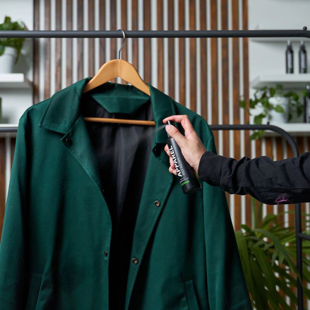 Apparel Refresh Spray is designed to neutralise the odor and bacteria left on your garment, making it possible for you to refresh and re-wear your favourite pieces while maintaining the cleanliness and condition of pieces from your collection.
