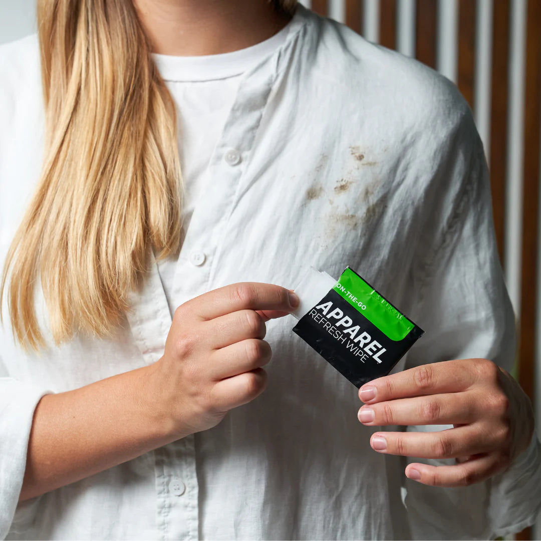 Apparel Refresh Wipes provide a fast and effective solution to clean and get rid of organic stains within seconds of foaming and rubbing the area.